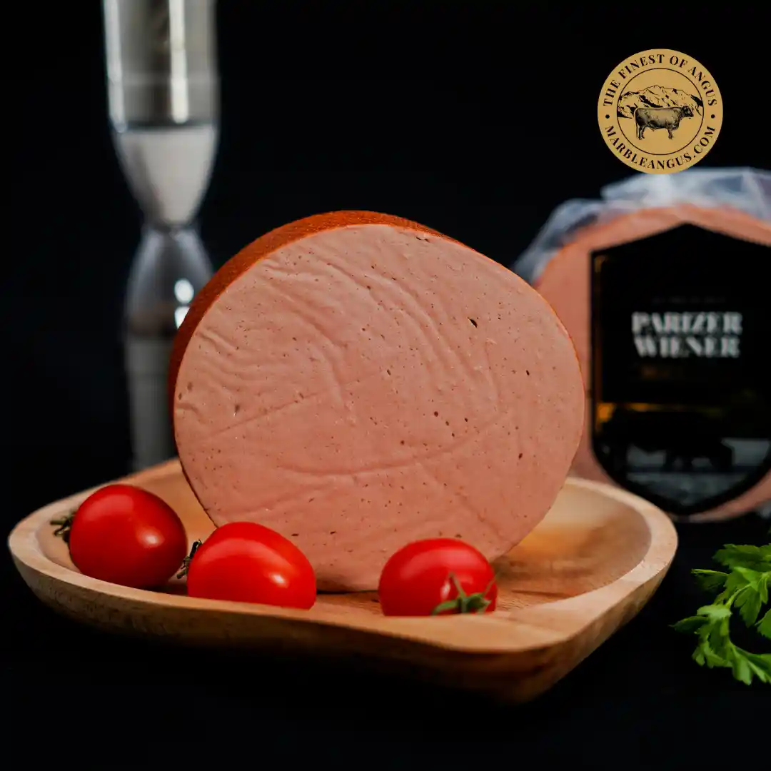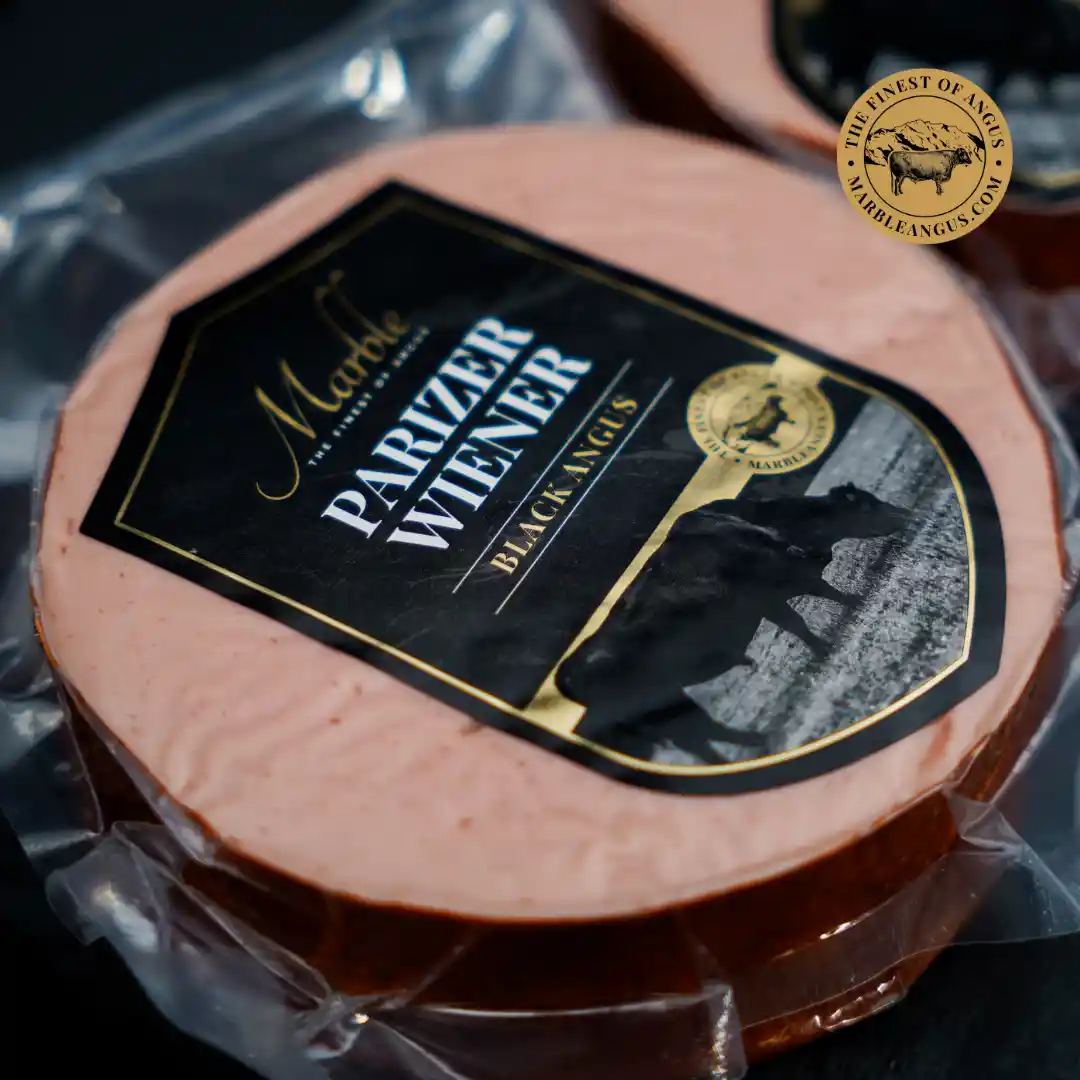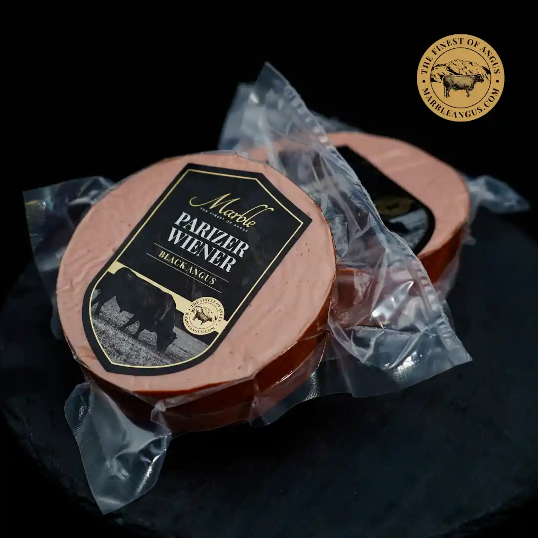 Parizer Wiener sunt o alegere perfectă pentru iubitorii de preparate din carne de calitate superioară, combinați cu tradiția și rafinamentul rețetelor vieneze. Realizați din carne de vită Black Angus și slănină, acești crenvurști fierti și afumați sunt un deliciu culinar cu o aromă bogată și o textură delicată, perfectă pentru mesele zilnice sau ocazii speciale. Usturoiul, piperul și muștarul sunt ingredientele care aduc un plus de savoare, procesul de afumare adaugă o notă subtilă și bogată de fum natural, care completează perfect gustul cărnii de vită și al slăninii.