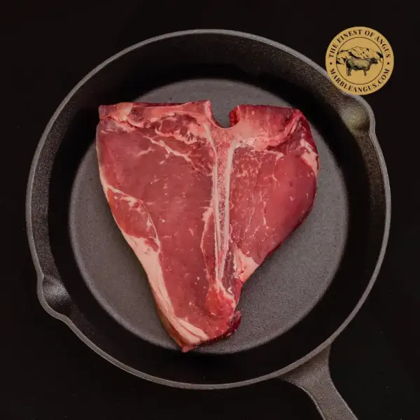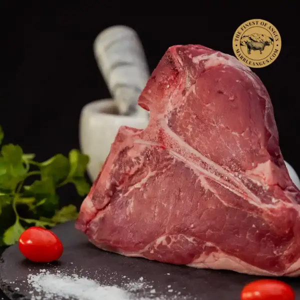 Porterhouse Steak este considerat unul dintre cele mai premium steakuri de vită, tăiat din zona short loin. Este o piesă mare, cu două texturi distincte: o parte generoasă de mușchiuleț (tenderloin) și o parte de striploin, unite printr-un os în formă de „T”. Datorită combinației dintre frăgezimea mușchiulețului și aroma intensă a striploin-ului, Porterhouse oferă o experiență completă de steak, ideală pentru gătit la grill sau tigaie. Un steak perfect pentru iubitorii de carne Angus premium, cu marmurare naturală și gust autentic.